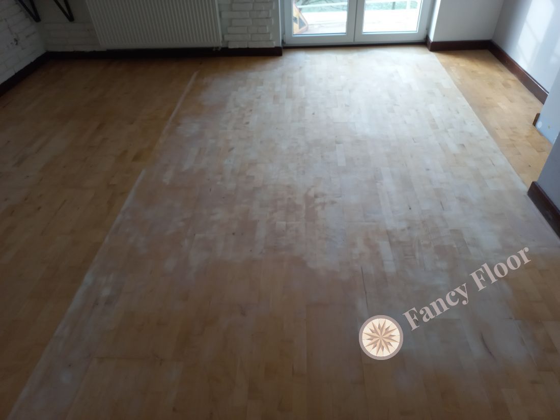 Właściciel próbował na własną rękę odnowić parkiet ale po 3 dniach zgłosił się po pomoc.